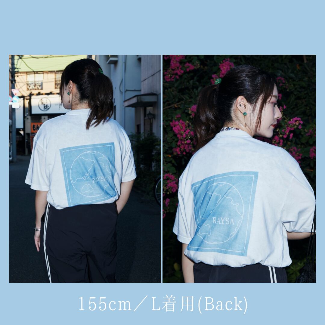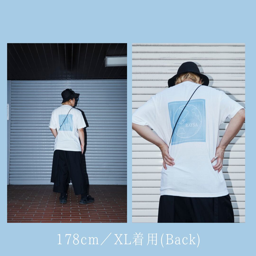 バックプリントはCDアルバム「一人、一頻り」のジャケットを彷彿とさせる青空カラーとRAYSAのトレードマークである地球が描かれています。